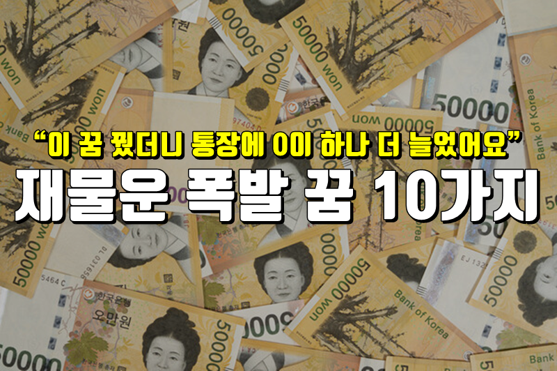 .“이 꿈 꿨더니 통장에 0이 하나 더 늘었어요” 재물운 폭발 꿈 리스트 10가지 꿈은 때때로 우리에게 놀라운 메시지를 전해주곤 합니다. 특히 돈이나 재물과 관련된 꿈은 현실에서도 금전운과 연결되는 경우가 많아 많은 사람들의 관심을 끌죠. 오늘은 실제로 ‘재물운이 들어왔다’는 후기가 있는 꿈 사례들을 모아봤습니다. 단순히 지나가는 꿈이라 생각했던 장면이, 사실은 큰 재물의 징조였을지도 모릅니다. 아래에서 ‘재물이 들어오는 꿈’ 10가지를 함께 확인해보세요. ① 돼지를 잡거나 가져오는 꿈돼지는 다산과 풍요를 상징한다고 하는데요.성장이 빨라서 쑥쑥 자라나는 돼지는 사업이 융성하게 되거나, 재물이 번창하는 것을 상징한다고 합니다. 때문에, 꿈에서 돼지를 쫓아내거나 돼지가 사라지는 꿈은, 들어오려는 재물을 잃게..